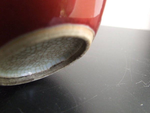 Deep Red late 15thC Ming Dynasty Inverted Bowl, having a crackle glazed base. Excellent condition.