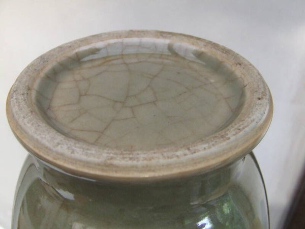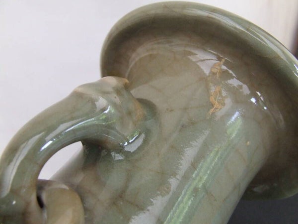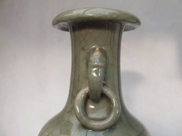 Chinese Porcelain Ming Dynasty Celadon Crackle Glaze Vase with Elephant Ringed Handles