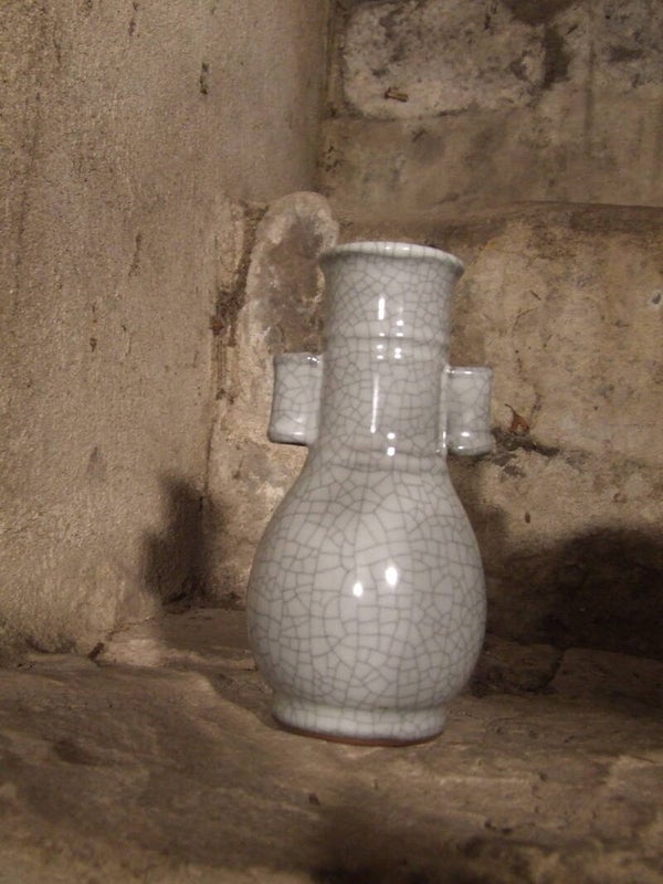 Chinese Song DynastyStyleGuan Gourd Arrow vase on stoneware body & in excellent condition. Standing 5 7/8" tall.